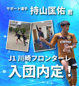 中学1年生の時から携わらせていただいている、持山匡佑選手(大学4年生)が川崎フロンターレに内定いたしました! 持山選手のご活躍を心から応援し、今後も全力でサポートさせて頂きます。 おめでとうございます!引き続き頑張ろう!